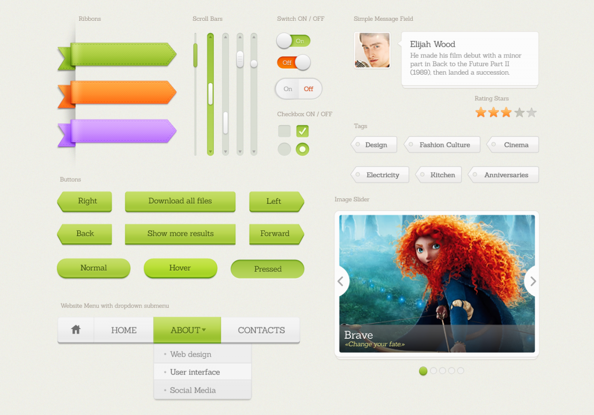 One of the first things you will notice about this UI kit is the playful and fun look that it offers. This makes it a perfect choice for many different sorts of blog. If you want to create a fun blog that is easy for your users to navigate, this UI kit has plenty to offer. The freebie kit features more than 30+ elements. These vector graphics are simple to use and to resize, and they always look great no matter how large or small you make them. All of the elements have a similar style so it’s possible to create a cohesive look to your site with ease.